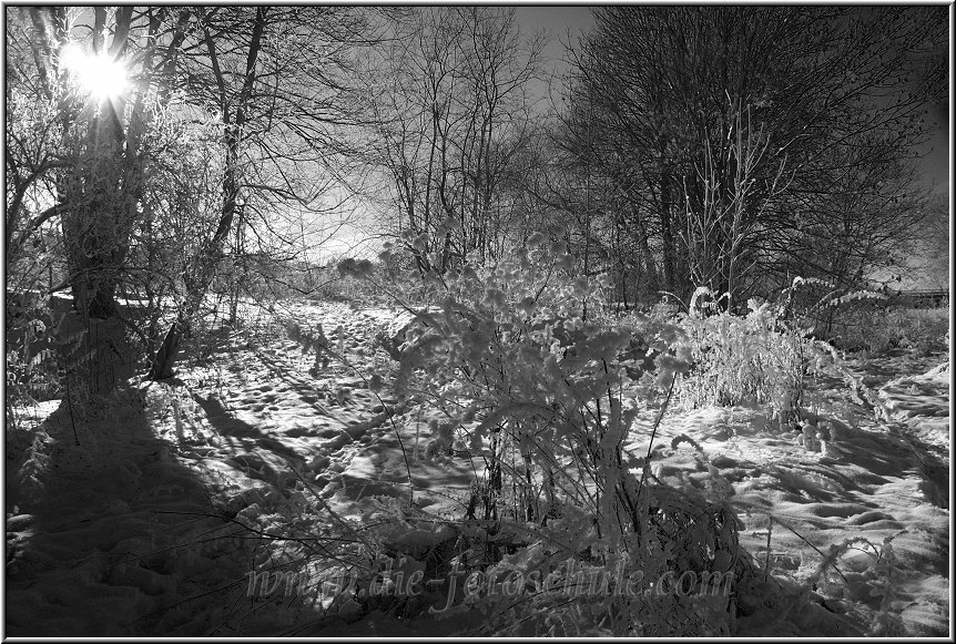 Ein winterliches Gegenlichtfoto in den Schwerter Ruhrwiesen zur Goldenen Stunde. Von der sieht man bei schwarzweißen Fotos leider nur noch die langen Schatten :-)) Sony Alpha 200 1/400 f8 ISO 100 28mm -- nachträglich umgewandelt und den Rotkanal betont