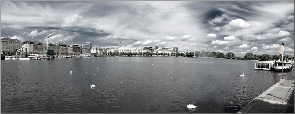 Ja bin ich jetzt im Yachthafen des Touristik-Örtchens gelandet? Nein, "nur" an der Außenalster :-) Hamburg ist ja schließlich wie Urlaub... Hier habe ich das iPhone-Foto nachträglich entfärbt und schwach wieder eingefärbt. Wie das genau geht, kannst Du HIER nachlesen.
