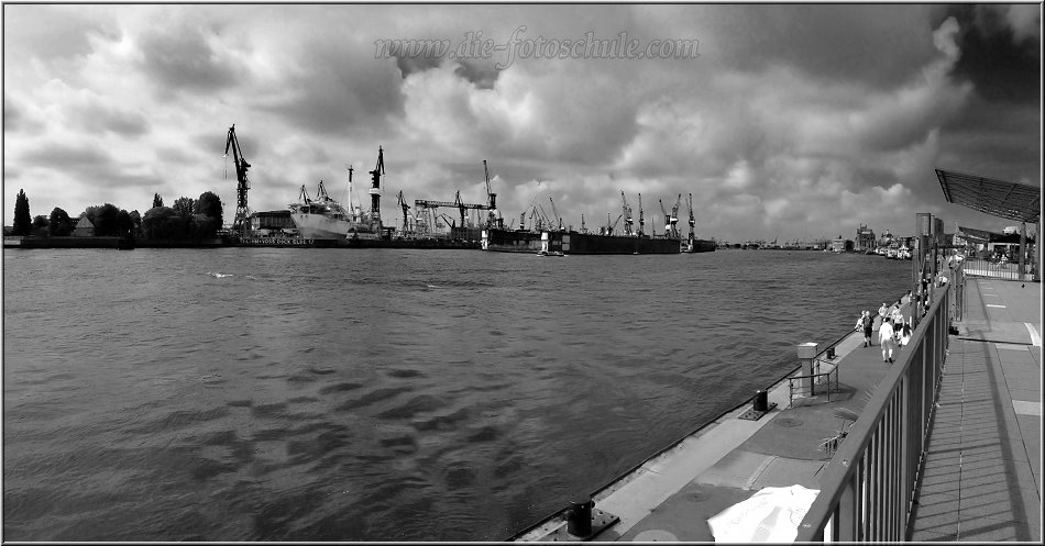 Das Schwarzweißfoto ist im Original ein Panorama, das leider nicht ganz so gelungen ist. Du wirst es sicher erkennen, was ich meine... Die Umwandlung vom Farbfoto zum Schwarzweißbild erfolgte dann später am Blechotto u.a. mit dem Graymixer. Das dunkle Wasser der Elbe und die bedrohlich wirkenden Wolken sorgen hier für ordentliche Dynamik.