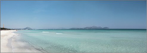 Es ist zwar nicht ganz so, aber der Playa de Muro ist echt herrlich. Weißer Sand, turkisblaues fast schon karibisch schimmerndes Meer (28 Grad Wasser), ein kleiner Dünengürtel und dahinter ein dichter Pinienwald. Das ganze gute 4 Kilometer lang und selbst Ende August / Anfang September noch halbwegs leer. Leer ist hier allerdings die Relation zu Mallorca-Verhältnissen und nicht zum Darß. Es ist aber auch hier das gleiche Phänomen, gehst Du 5 Minuten in Richtung "Fort-von-Parkplätzen" läufst Du fast alleine rum, während sich ortsnah gewisse Touristenschichten beginnen auf den Kaufliegen unter den typisch mallorquinischen Strohpilzen zu stapeln.