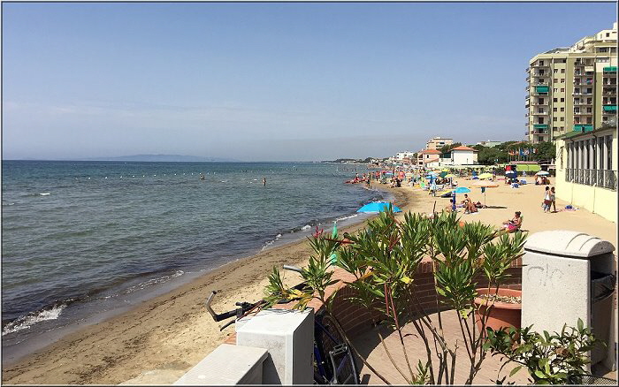 Südlich von San Vincenzo auf dem Weg in Richtung Piombino zieht sich ebenfalls ein recht naturbelassener Strand, der jedoch unterbrochen wird von bewirtschafteten Bereichen, an denen sich Apartement- und Campinganlagen befinden. Die Straße läuft parallel zum Meer, ist nur vom Pinienwald davon getrennt. Wenn Du der Straße folgst, geht´s ins größere und bekanntere Follonica.