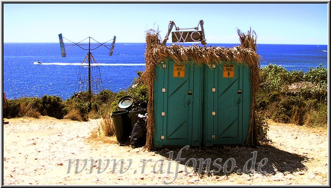 Das Naturschutzgebiet nach Kamenjak nämlich. Ein Naturschutzgebiet, das man gegen eine Gebühr von 15 Kuna (rund 2 Euro) mit dem Auto über extrem staubigen, holprigen und eigentlich kaum mit normalen Autos befahrbaren steinigen Wegen entdecken kann. Am südlichsten Zipfel direkt am Meer liegt perfekt versteckt die coolste Bar Istriens (und ganz sicher auch die südlichste...). Aus Maispflanzen, Bast und Stroh, Holzbänken und abgesägten Baumstümpfen hat man hier einen idyllischen Fleck geschaffen, der einen Besuch auf jeden Fall lohnt. Zahlreiche ursprüngliche Buchten (weil Naturschutzgebiet), die oft leider sehr zugemüllt sind (wegen der bekloppten Touris, die nicht in der Lage sind, ihren Müll in den am Eingang sogar kostenlos zur Mitnahme gereichten Müllsäcken zu packen....), laden zum "faulen Rumliegen" oder entspannten Schwimmen im glasklaren Wasser ein. Kein Haus stört hier das Empfinden der Landschaft und ein Spaziergang entlang der Buchten ist herrlich, aber durch das Klettern oft auch beschwerlich. Uns so wird Premantura und insbesondere Kamenjak im Reiseführer beschrieben: