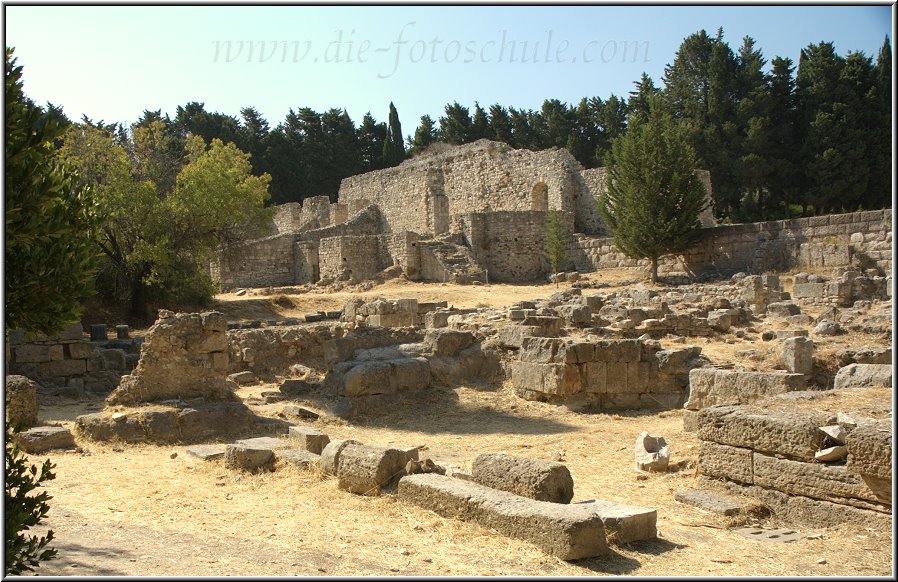 | Kos Tigaki Fotoschule 031 | Das Asklipion ist das antike Heiligtum für den Gott der Heilkunst und war so etwas wie ein Krankenhaus oder eine Notarztstation. Davon zu sehen sind einige Säulen und drei riesige Terrassen, die eine schöne Aussicht aufs weit unten liegende Meer bieten. |