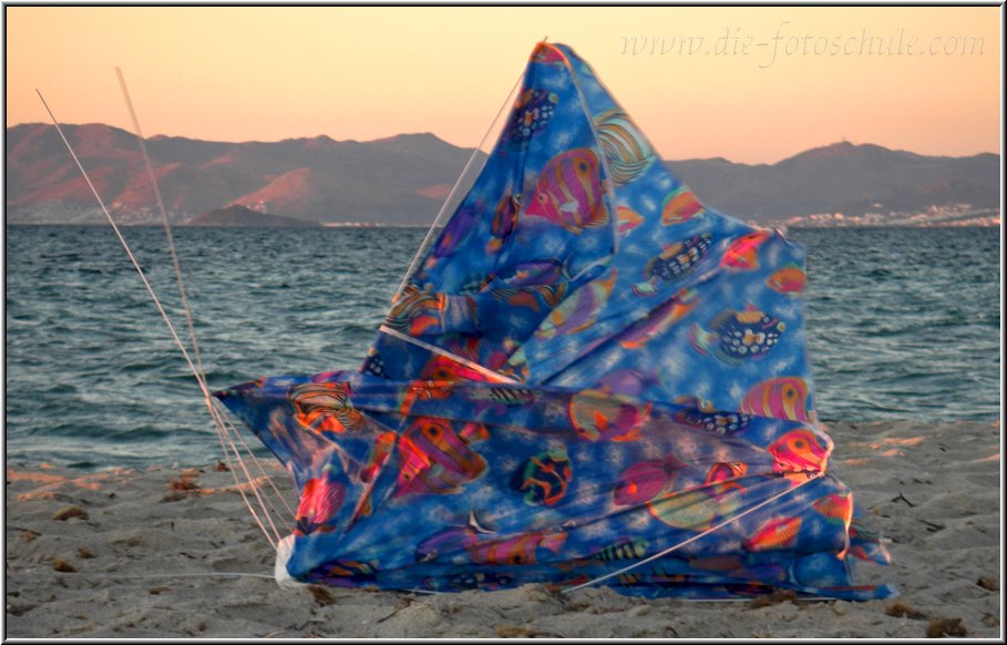 Der Strand ist von diesen Liegenbatterien echt verschandelt, aber der Weg bis zum Strandabschnitt vor dem stillgelegten Salzsee hat sich gelohnt. Schlagartig macht sich ein anderes Empfinden breit, abseits der Meute. Abends kann man hier die Sonne in intensiven Farben hinter der Bergsilhoutte von Pserimos untergehen sehen und alles was ans Ohr dringt, ist das Rauschen des azurblauen Meeres. Der Strand wird hier nicht mehr gereinigt, was einerseits sehr viel Seegras in den Sand mischt (natürlich und schön), andererseits den Müll hirnloser Deppen hier verrotten läßt. Das werde ich wohl nie begreifen, wieso die Leute bis hierhin latschen, um einen schöneren Strand vorzufinden, als den überfüllten Hauptstrand und ihn dann selbst verschandeln, durch liegengelassenen Müll und Unrat!